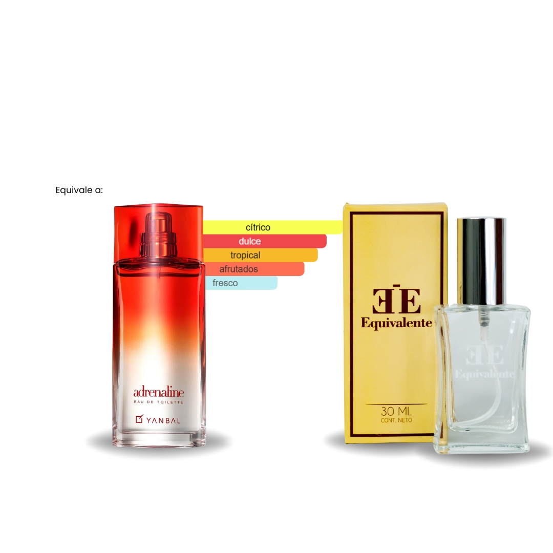 Adrenaline para dama es una fragancia energética y vibrante que refleja el dinamismo y la fuerza de la mujer moderna. Con notas frescas y chispeantes de cítricos y manzana verde, se mezcla con un toque floral de jazmín y un fondo cálido de almizcle. Perfecta para mujeres activas y seguras que buscan un perfume refrescante y audaz que los acompañe en cada desafío del día a día.