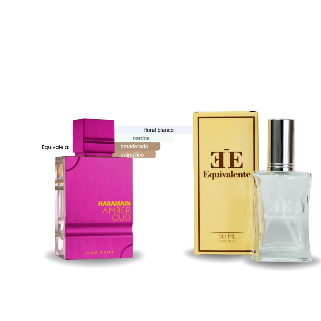 Amber Oud Ultra Violet es una fragancia femenina que combina el lujo del ámbar con una sensualidad floral moderna. Se abre con notas chispeantes de bergamota y frutas rojas, que aportan frescura y vitalidad. En el corazón florecen acordes de violeta, rosa y jazmín, creando un bouquet delicado y elegante. La base intensa de ámbar, vainilla y un toque de oud suave le da profundidad y una estela inolvidable. Una esencia envolvente y sofisticada que equilibra dulzura y misterio con perfecta armonía.