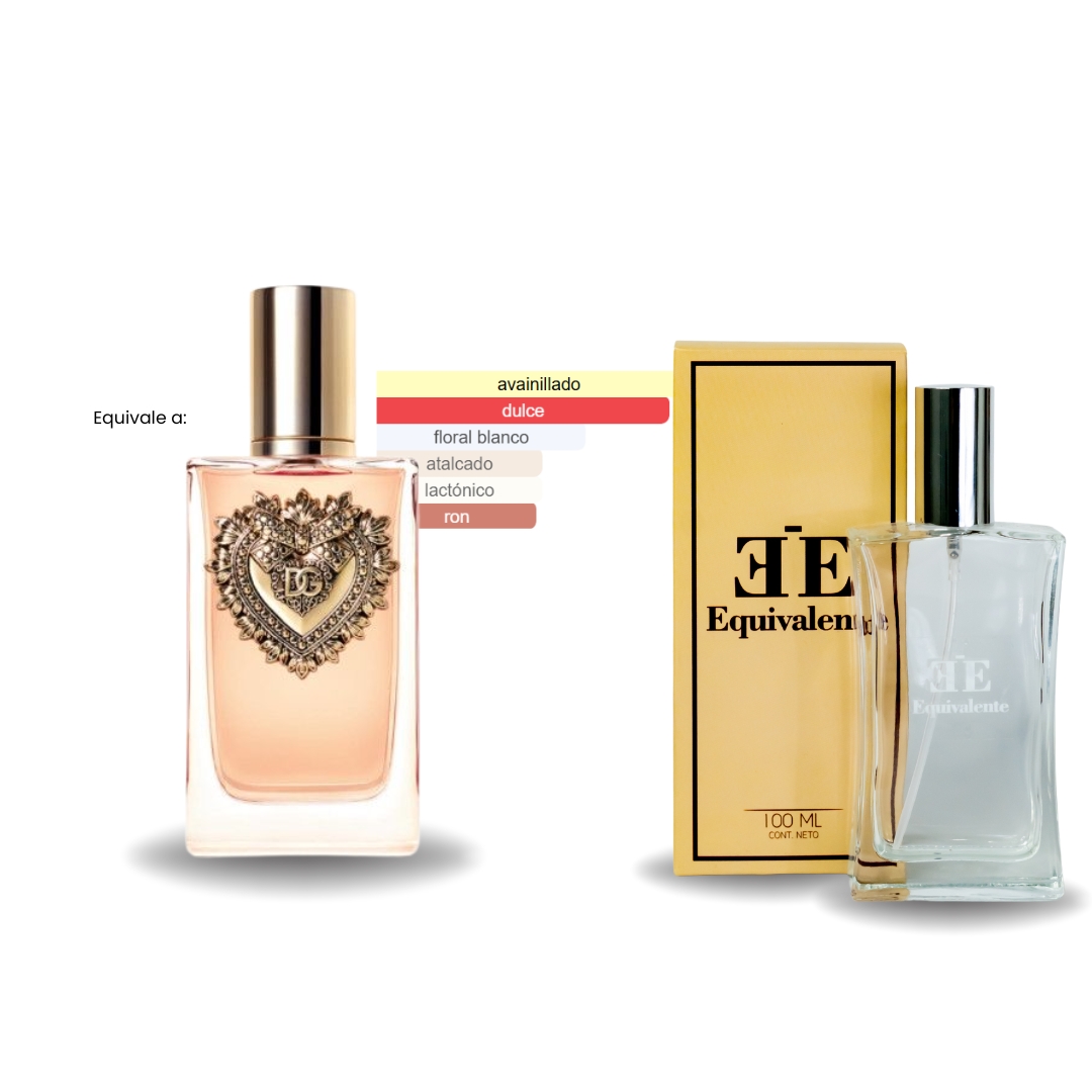 Devotion de Dolce & Gabbana es una fragancia gourmand, cálida y sofisticada que combina notas de cítricos, flor de azahar y dulce panettone, envueltas en un fondo cremoso de vainilla. Un aroma envolvente y elegante que transmite ternura, pasión y carácter. Ideal para mujeres auténticas, románticas y decididas.