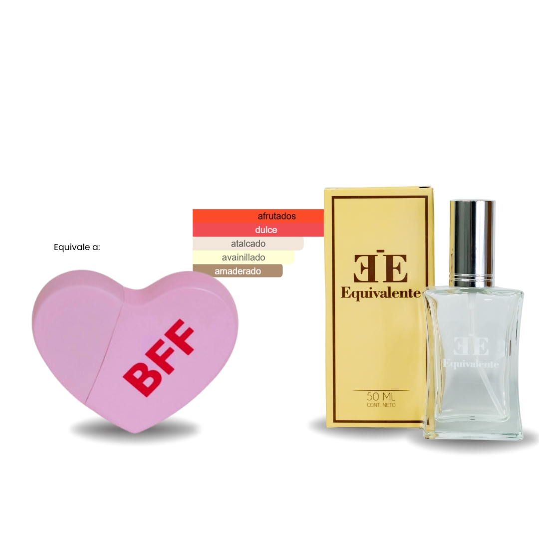BFF es una fragancia floral frutal lanzada en 2018, que combina notas de bayas silvestres, caimito y grosella roja en la salida; un corazón de rosa rosada, flor de peral y jazmín sambac; y una base suave de malvavisco, vainilla, almizcle y cedro. Inspirada en la amistad y la diversión, es perfecta para quienes buscan un aroma dulce y alegre que refleje su personalidad vibrante