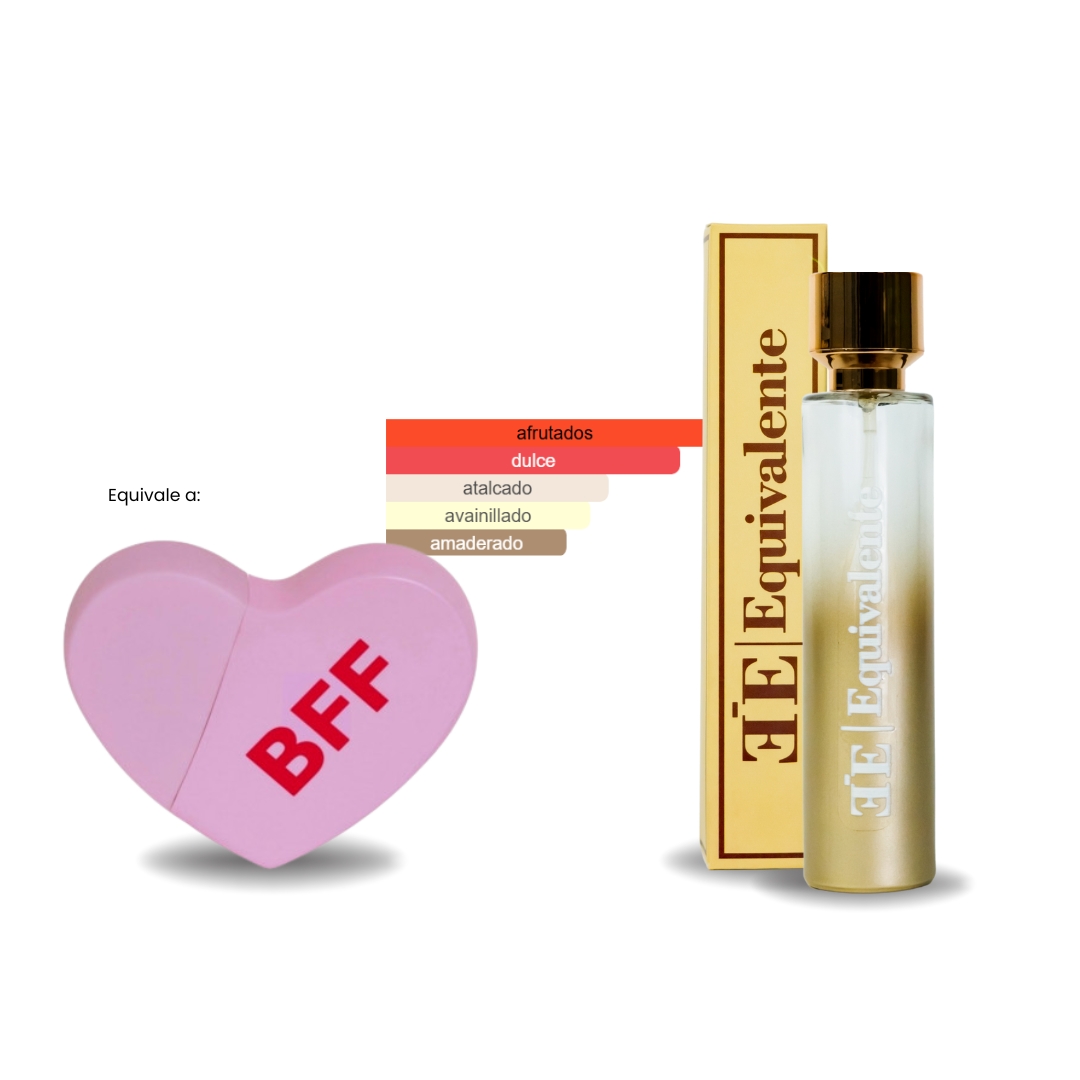 BFF es una fragancia floral frutal lanzada en 2018, que combina notas de bayas silvestres, caimito y grosella roja en la salida; un corazón de rosa rosada, flor de peral y jazmín sambac; y una base suave de malvavisco, vainilla, almizcle y cedro. Inspirada en la amistad y la diversión, es perfecta para quienes buscan un aroma dulce y alegre que refleje su personalidad vibrante