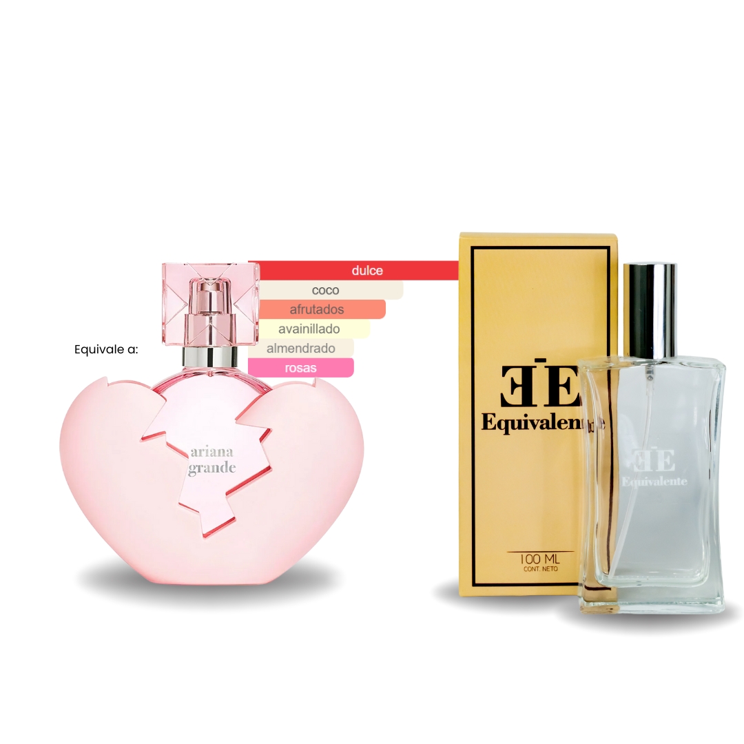 Thank You, Next de Ariana Grande es una fragancia alegre y moderna que combina notas de flor de cerezo, frambuesa y rosa con un toque de almendra y vainilla. Esta mezcla dulce y fresca refleja la actitud audaz y positiva de la mujer que sigue adelante, celebrando su fuerza y autoestima. Es ideal para mujeres que buscan una fragancia única y energizante.